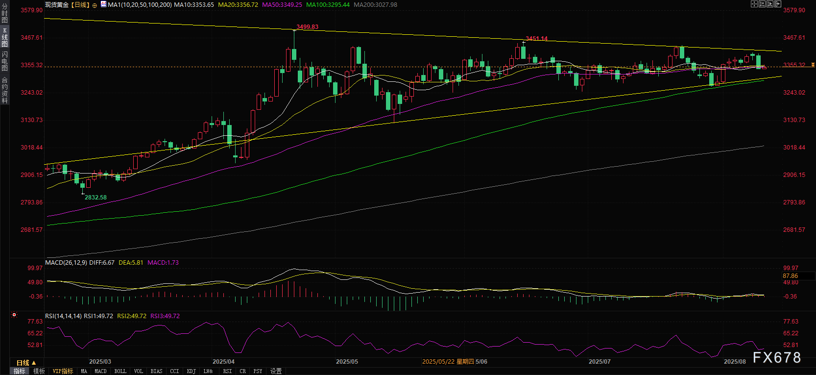 金价交投于3342-3358美元区间。随着美元多头在关键美国CPI报告公布前退居观望,黄金从昨日3341美元附近的低点反弹,美联储9月降息预期升温为金价提供买盘支撑。由于交易员等待新通胀数据以明确方向,并权衡潜在美俄峰会背景下的风险资金流动,黄金上行空间仍受限制。